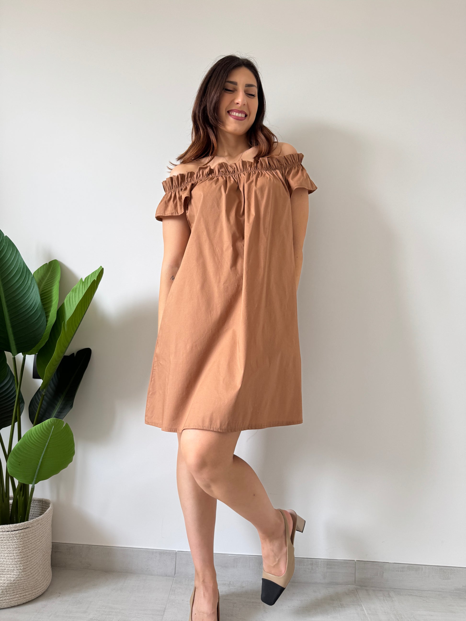 Abito cotone cammello