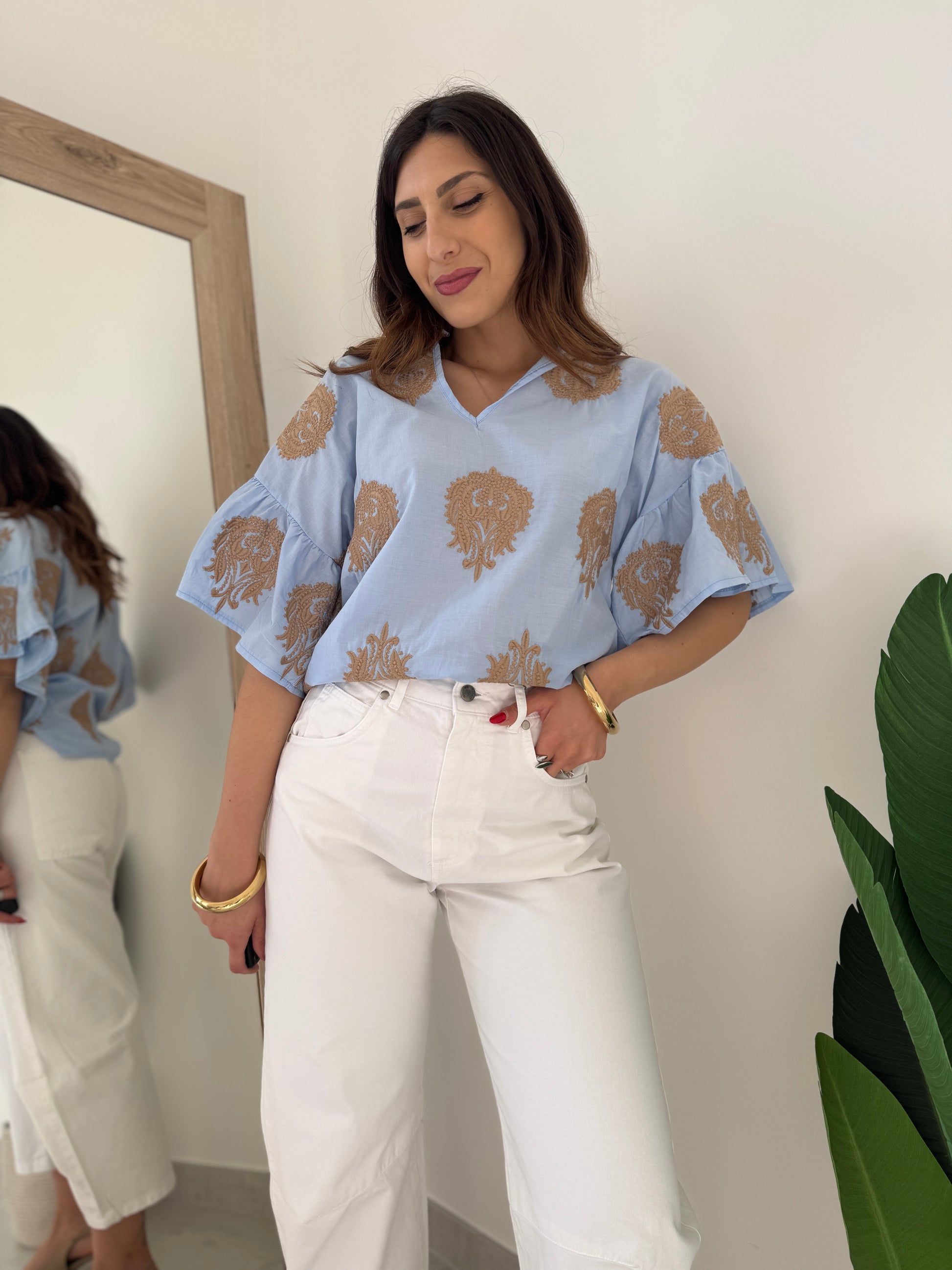 Blusa con ricami Brend celeste