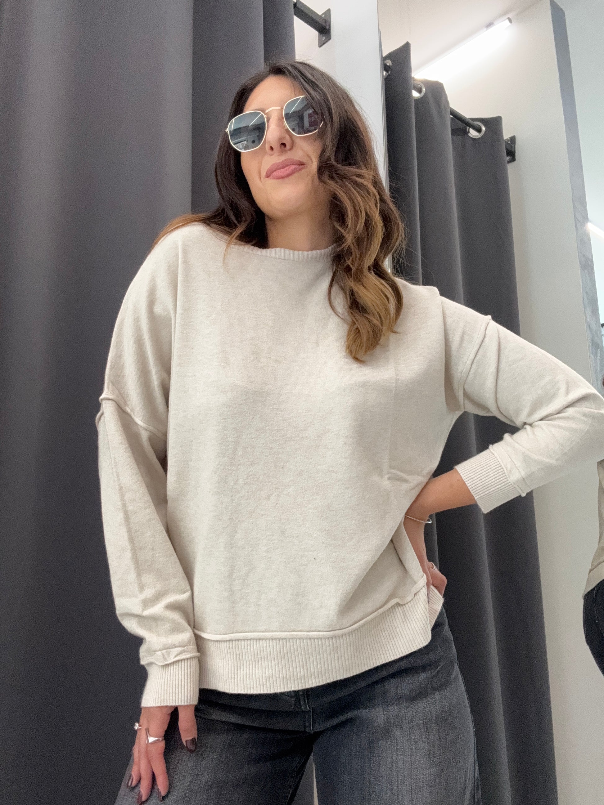 Maglia girocollo con rilievi firmata casa Brend, variante colore beige.